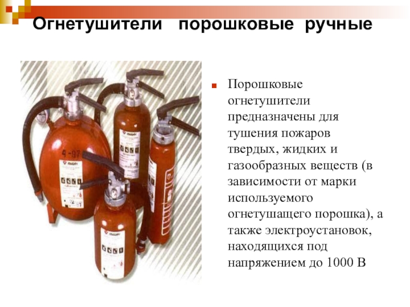 и газообразных веществ (в зависимости от марки используемого огнетушащего порошка), а также электроустановок, находящихся под напряжением до 1000 В