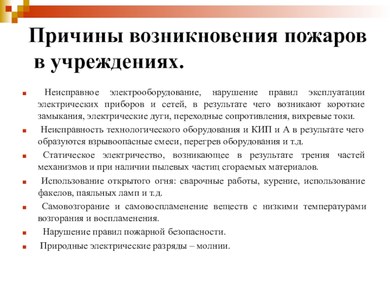 Неисправное электрооборудование, нарушение правил эксплуатации электрических