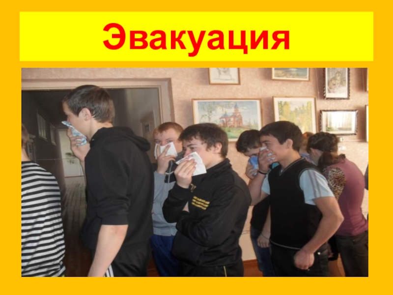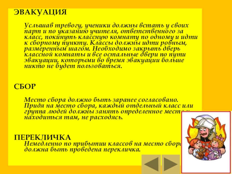 ЭВАКУАЦИЯ Услышав тревогу, ученики должны встать у своих парт и по указанию учителя, ответственного за класс, покинуть