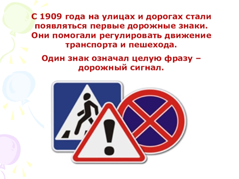 Слайд 5С 1909 года на улицах и дорогах стали появляться первые дорожные