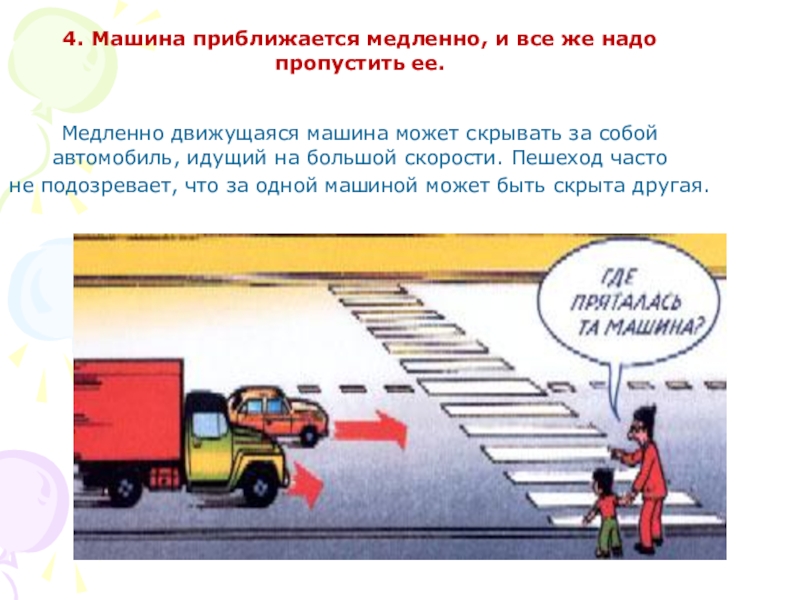 Слайд 324. Машина приближается медленно, и все же надо пропустить ее.