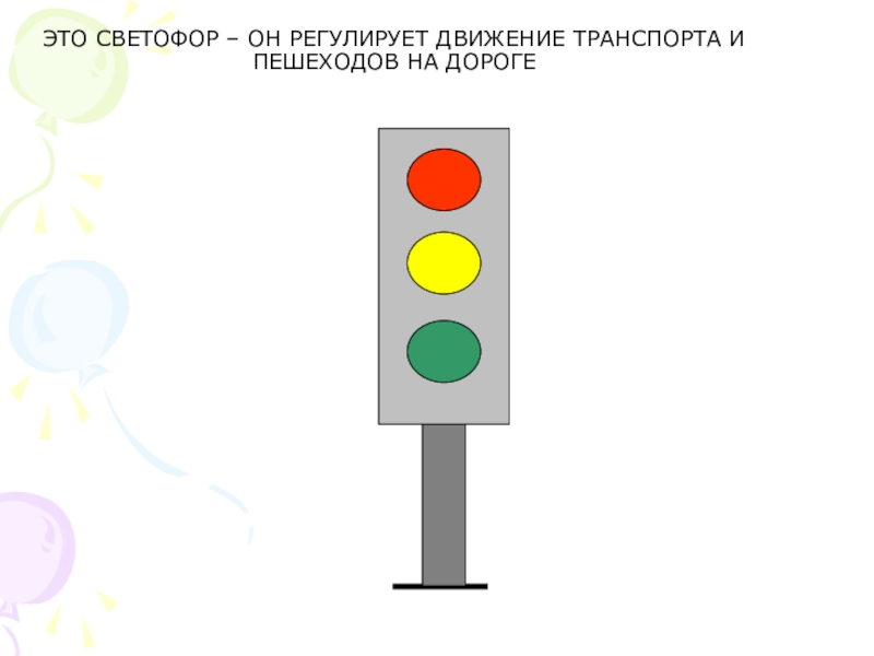 Слайд 21ЭТО СВЕТОФОР – ОН РЕГУЛИРУЕТ ДВИЖЕНИЕ ТРАНСПОРТА И ПЕШЕХОДОВ НА ДОРОГЕ