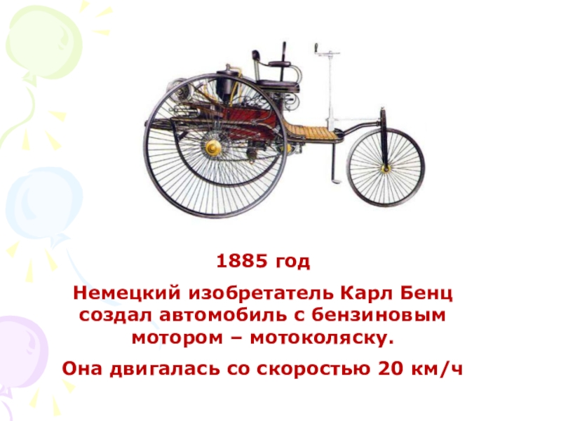 Немецкий изобретатель Карл Бенц создал автомобиль с бензиновым мотором –