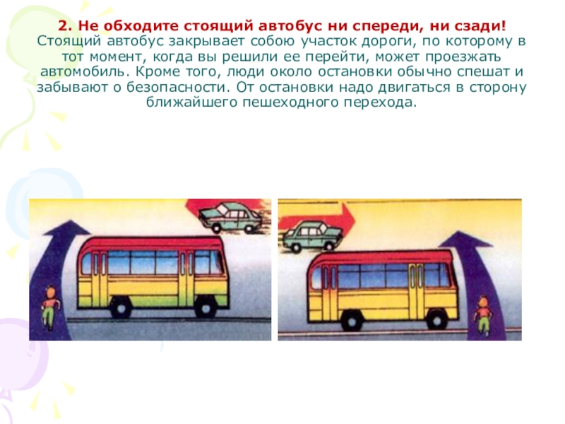 Слайд 302. Не обходите стоящий автобус ни спереди, ни сзади!