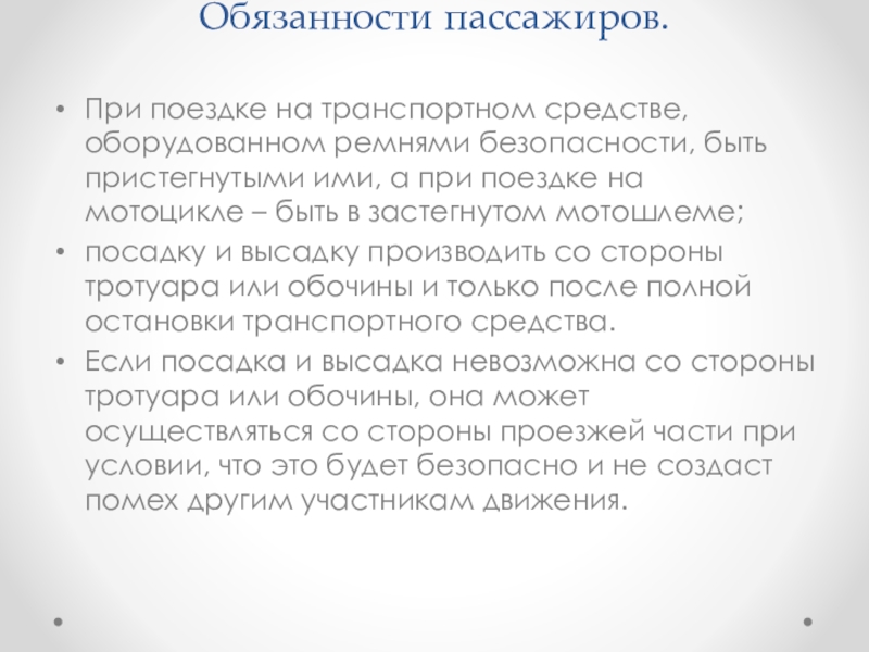 посадку и высадку производить со стороны тротуара или обочины и только после полной остановки транспортного средства.