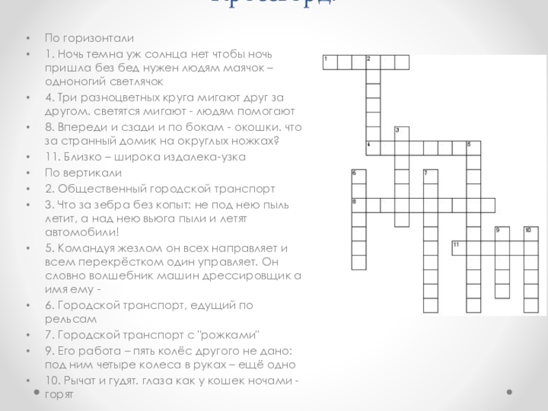 5. Командуя жезлом он всех направляет и всем перекрёстком один управляет. Он словно волшебник машин дрессировщик а имя ему -