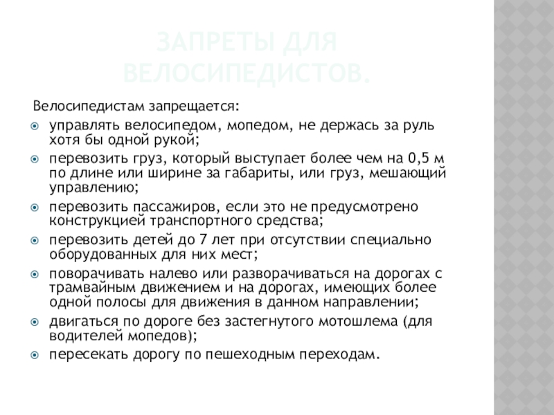 двигаться по дороге без застегнутого мотошлема (для водителей мопедов);