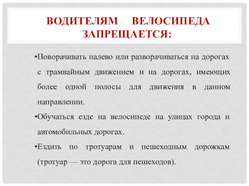 Слайд 11ВОДИТЕЛЯМ ВЕЛОСИПЕДА ЗАПРЕЩАЕТСЯ: