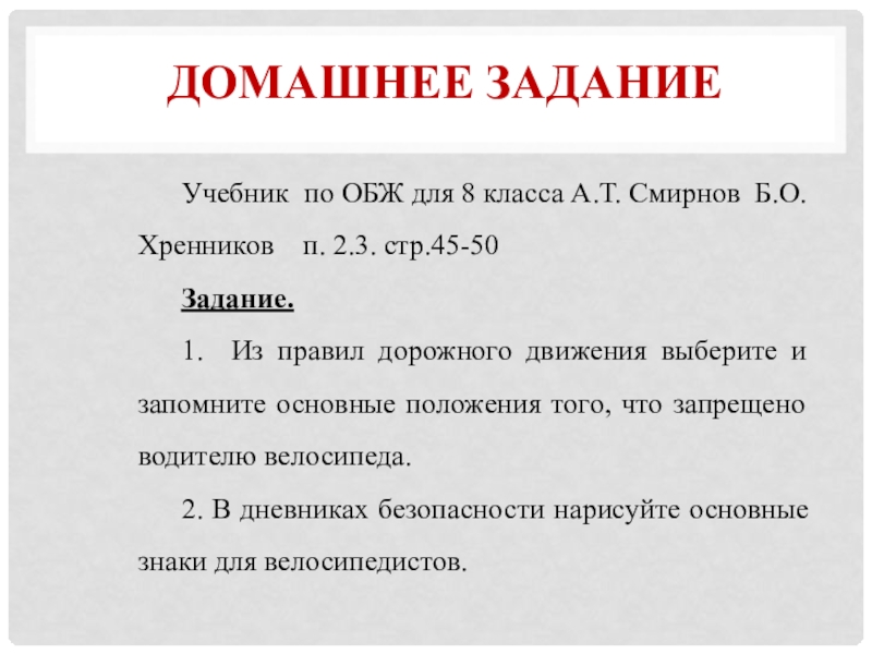 Слайд 23ДОМАШНЕЕ ЗАДАНИЕ