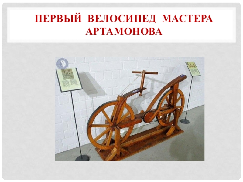 Слайд 8ПЕРВЫЙ ВЕЛОСИПЕД МАСТЕРА АРТАМОНОВА