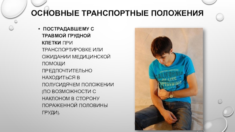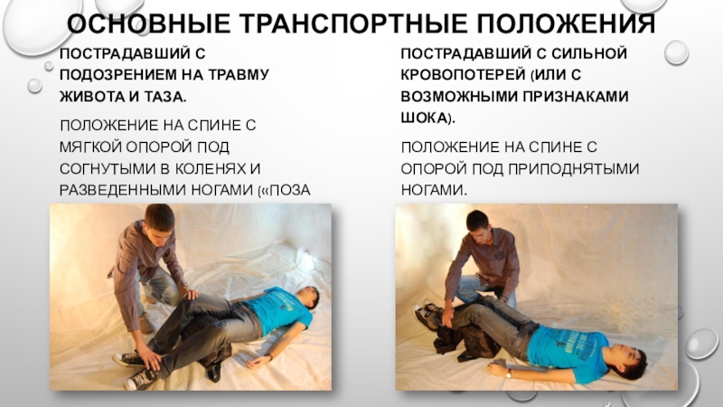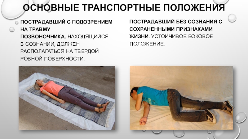 Пострадавший без сознания с сохраненными признаками жизни. Устойчивое боковое положение.