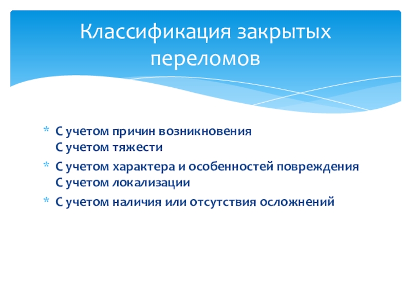Классификация закрытых переломов
