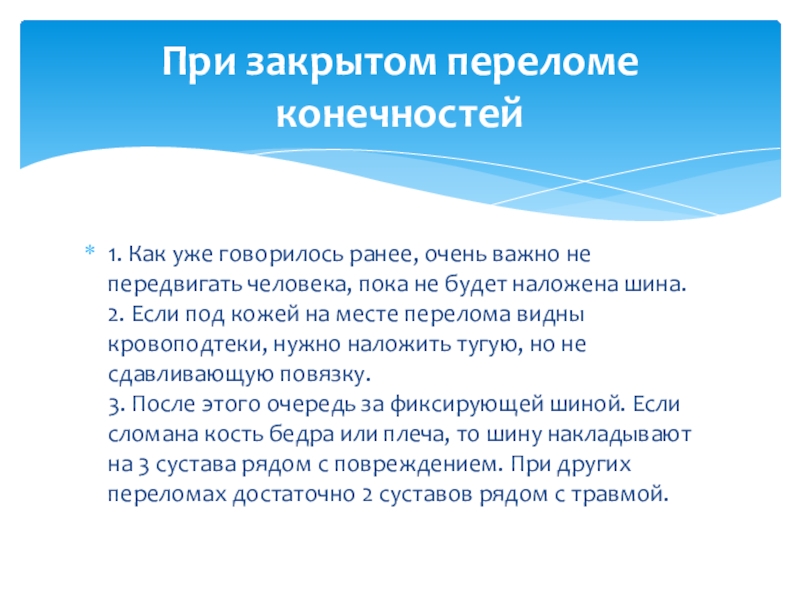 При закрытом переломе конечностей