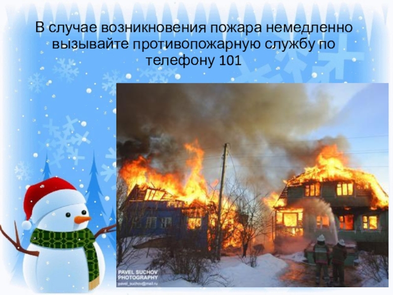 Слайд 10В случае возникновения пожара немедленно вызывайте противопожарную службу по телефону 101