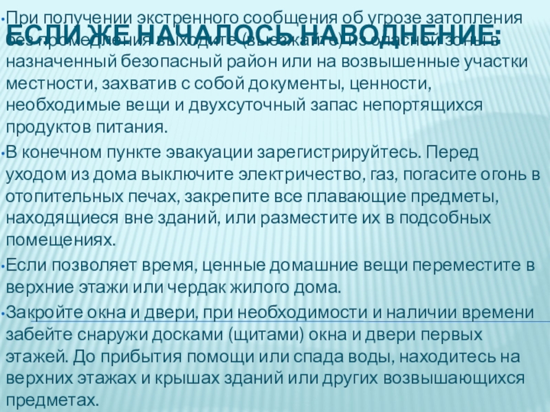 Слайд 3Если же началось наводнение: