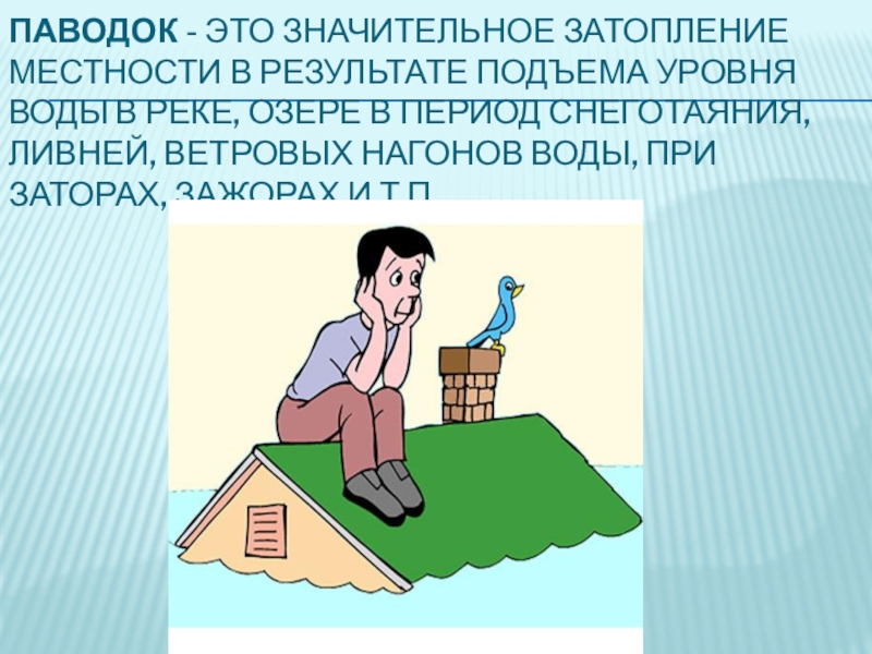 Слайд 5Паводок - это значительное затопление местности в результате подъема уровня воды в