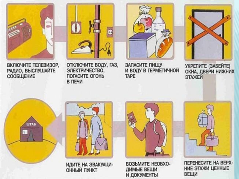 ·Сохраняйте спокойствие, предупредите соседей, окажите помощь инвалидам, детям и людям преклонного возраста.