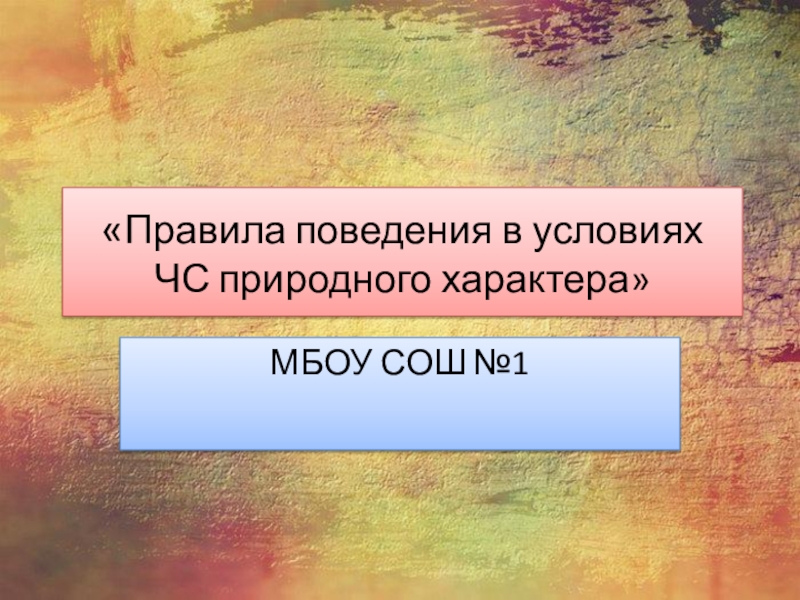 Слайд 1«Правила поведения в условиях ЧС природного характера»