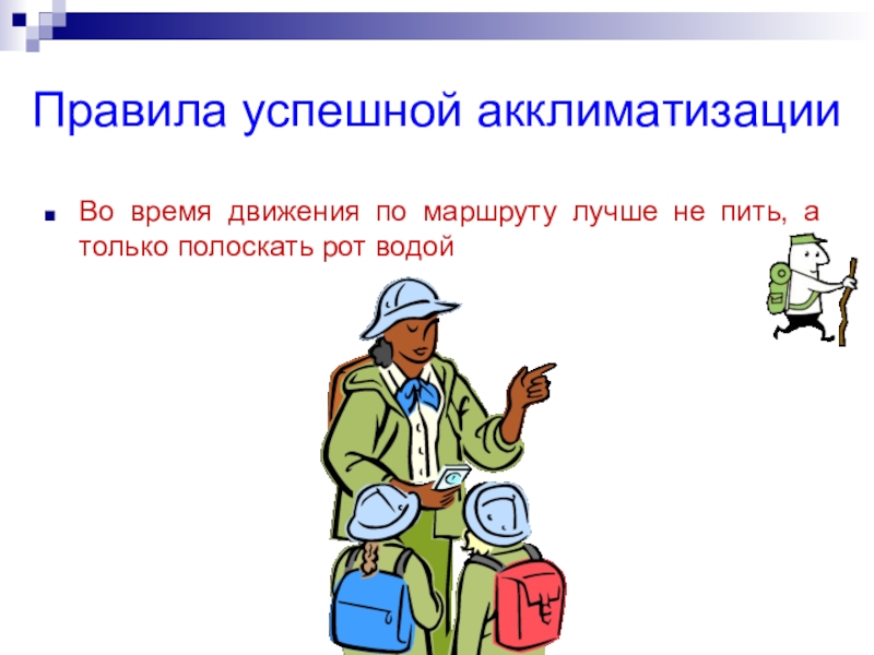 Правила успешной акклиматизацииВо время движения по маршруту лучше не пить, а только полоскать рот водой