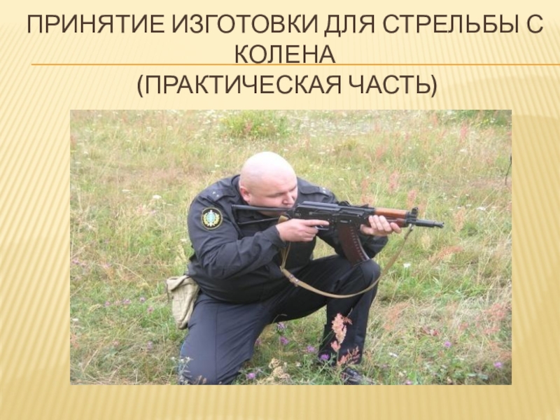 Слайд 15принятие изготовки для стрельбы с колена