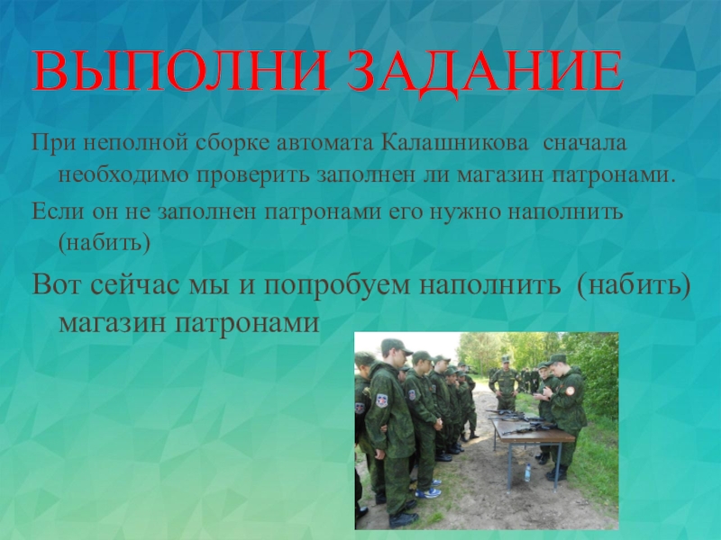 При неполной сборке автомата Калашникова сначала необходимо проверить заполнен