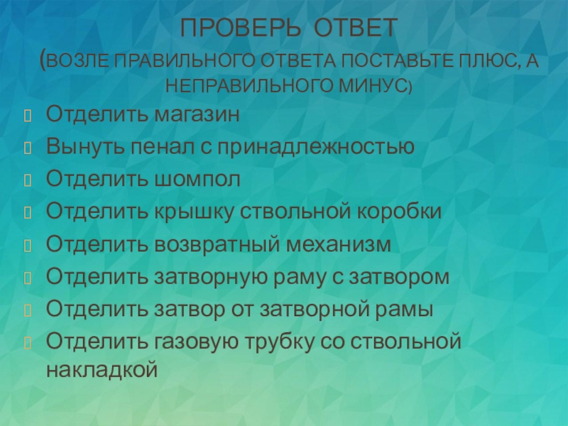 Отделить затворную раму с затвором