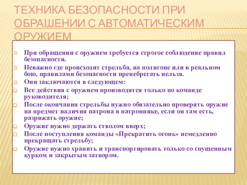 Техника безопасности при обрашении с автоматическим оружием