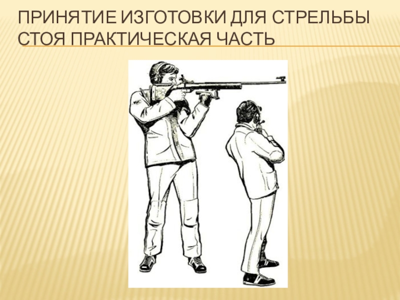 Слайд 16принятие изготовки для стрельбы стоя практическая часть