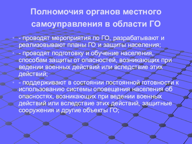 Слайд 11Полномочия органов местного самоуправления в области ГО