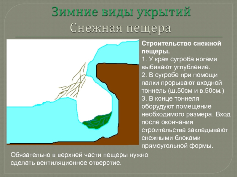 Обязательно в верхней части пещеры нужно сделать вентиляционное отверстие.