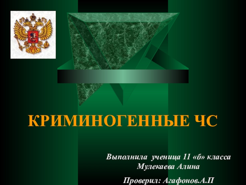 КРИМИНОГЕННЫЕ ЧСВыполнила ученица 11 «б» класса Мулекаева Алина Проверил: Агафонов.А.П