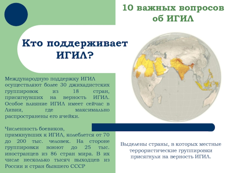 Выделены страны, в которых местные террористические группировки присягнули на верность ИГИЛ.