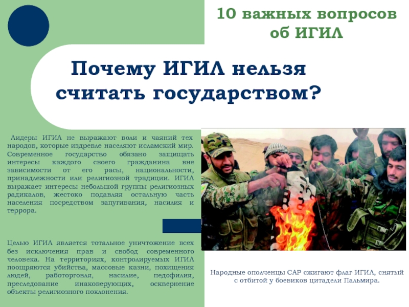 Народные ополченцы САР сжигают флаг ИГИЛ, снятый с отбитой у боевиков цитадели Пальмира.
