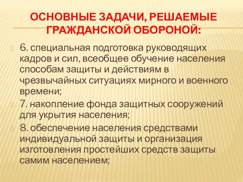 Слайд 9Основные задачи, решаемые гражданской обороной:
