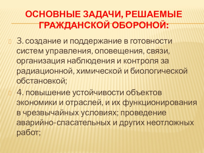 Слайд 5Основные задачи, решаемые гражданской обороной: