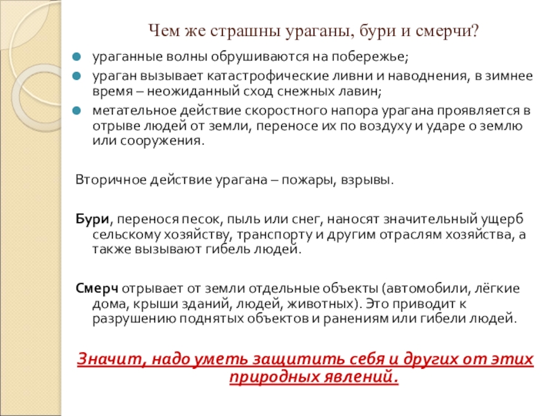 Ураган – ветер разрушительной силы, скорость которого составляет более 120 км/ч.