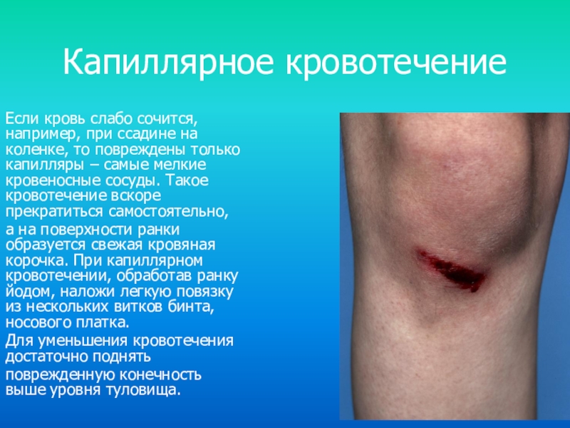 Если кровь слабо сочится, например, при ссадине на коленке, то