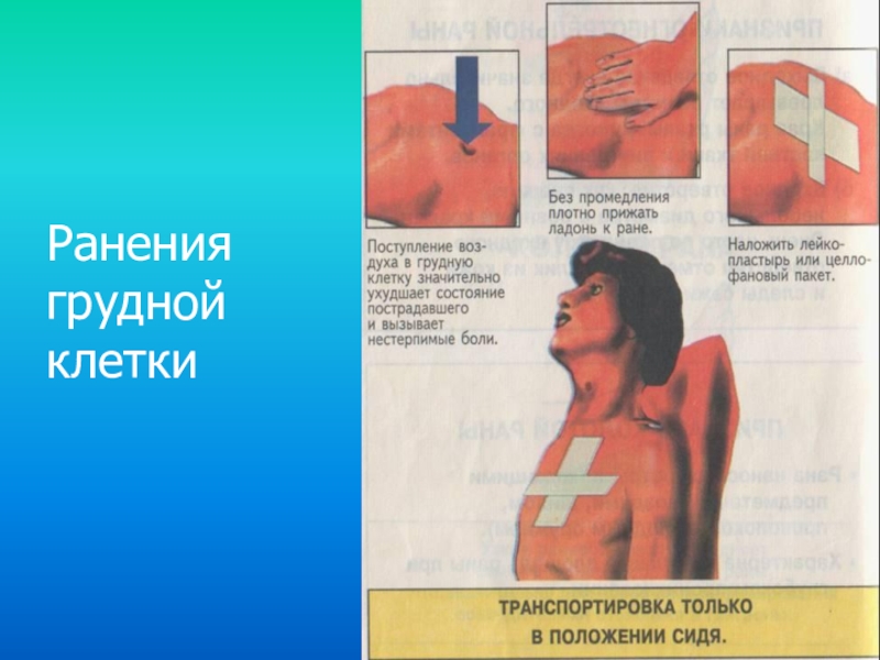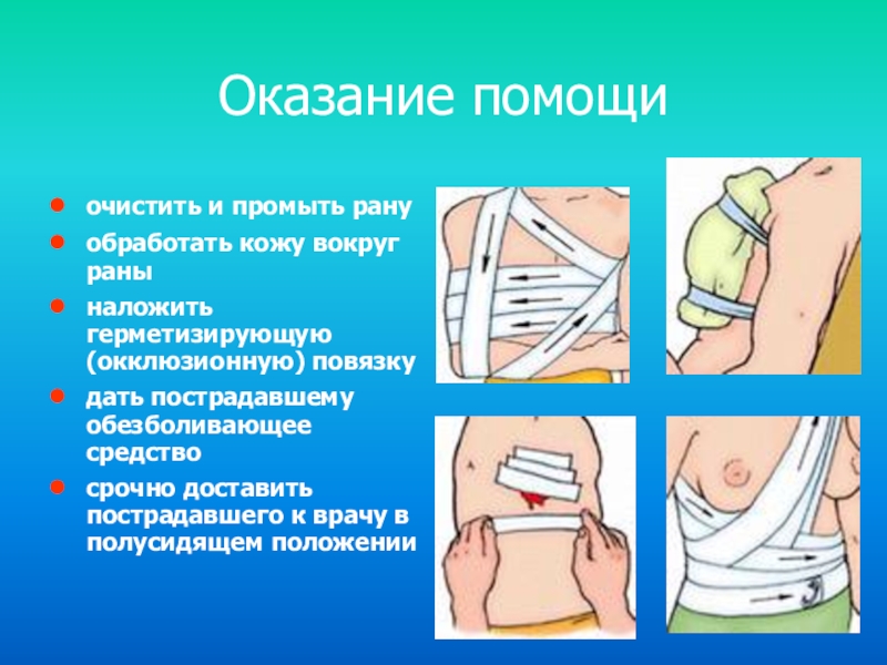 срочно доставить пострадавшего к врачу в полусидящем положении