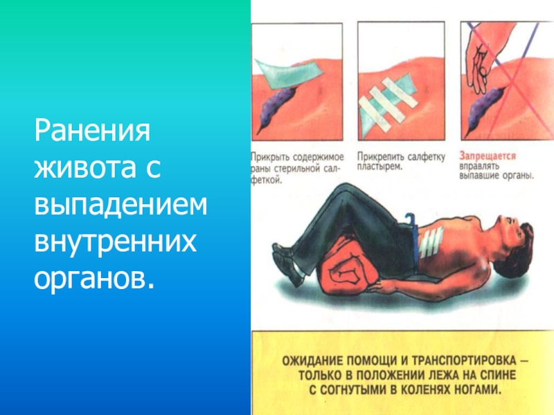 Слайд 11Ранения живота с выпадением внутренних органов.