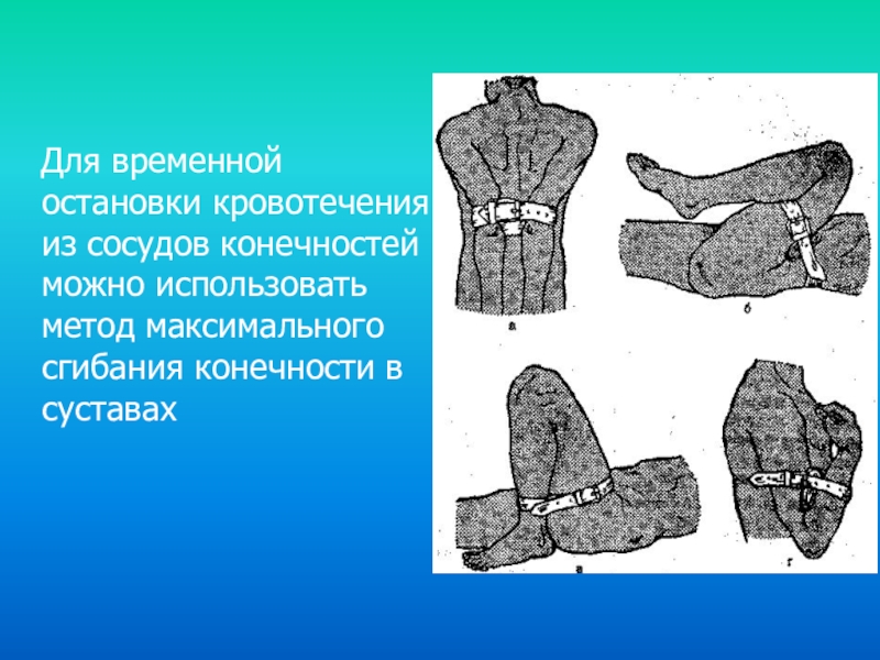 Слайд 25 Для временной остановки кровотечения из сосудов конечностей можно использовать