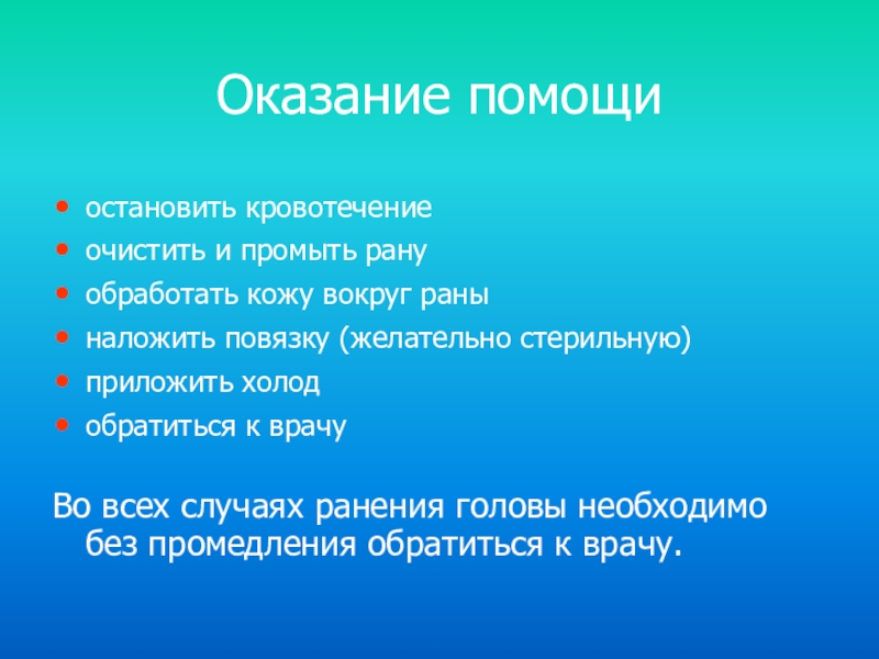Во всех случаях ранения головы необходимо без промедления обратиться к врачу.