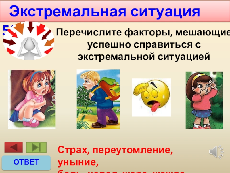 это ситуация, в которой возникает повышенная угроза здоровью и жизни людей, требующая мобилизации, напряжения всех физических и душевных сил для спасения.