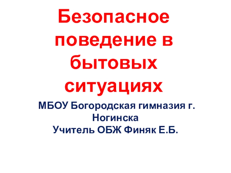 Слайд 1Безопасное поведение в бытовых ситуациях