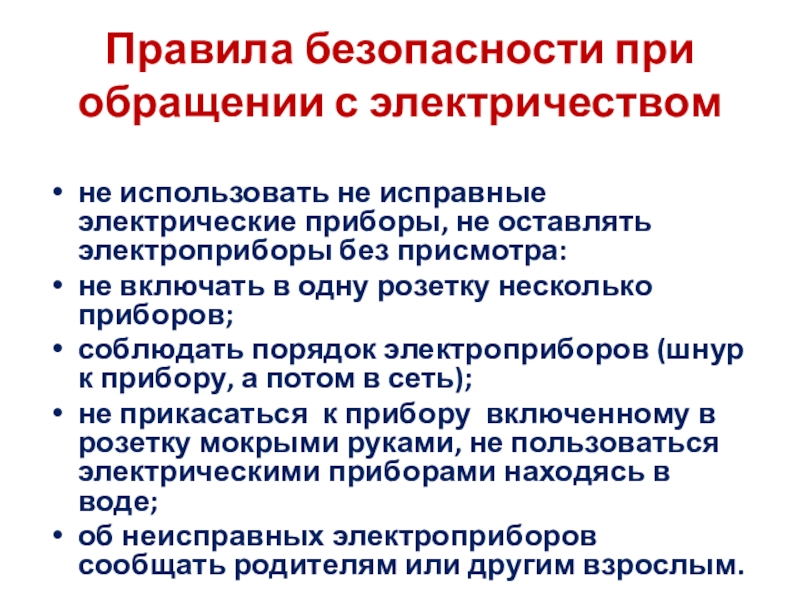 Слайд 5Правила безопасности при обращении с электричеством