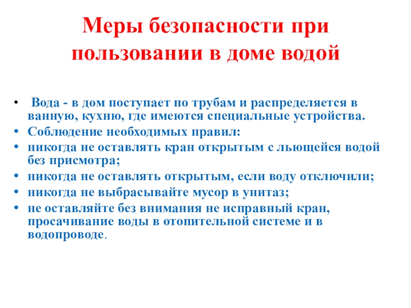 Слайд 8Меры безопасности при пользовании в доме водой