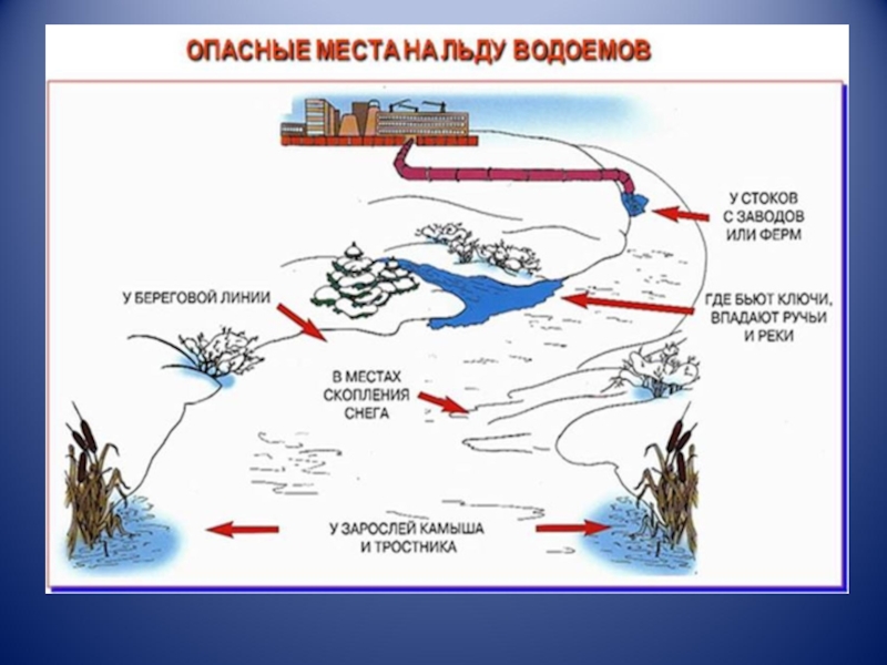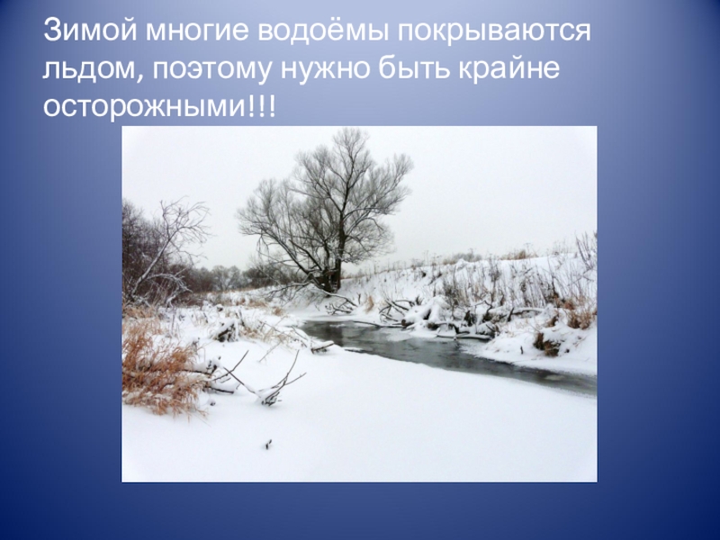 Слайд 15Зимой многие водоёмы покрываются льдом, поэтому нужно быть крайне осторожными!!!