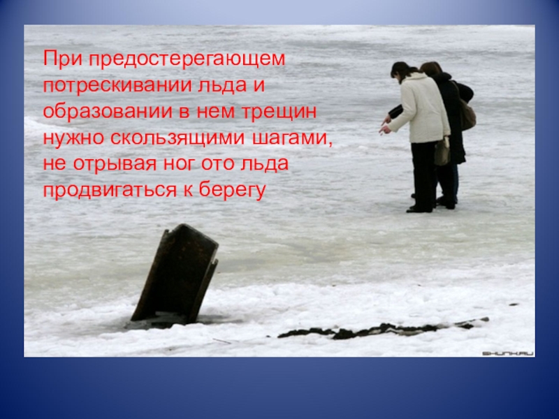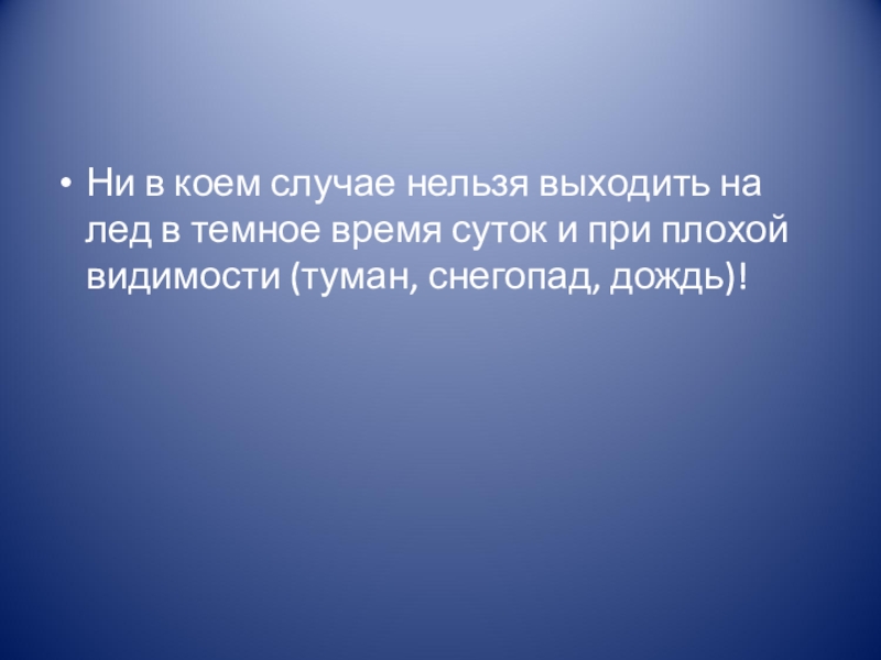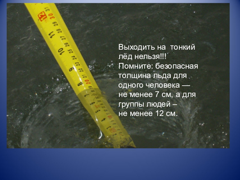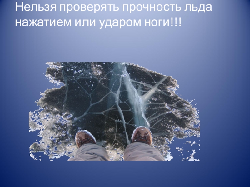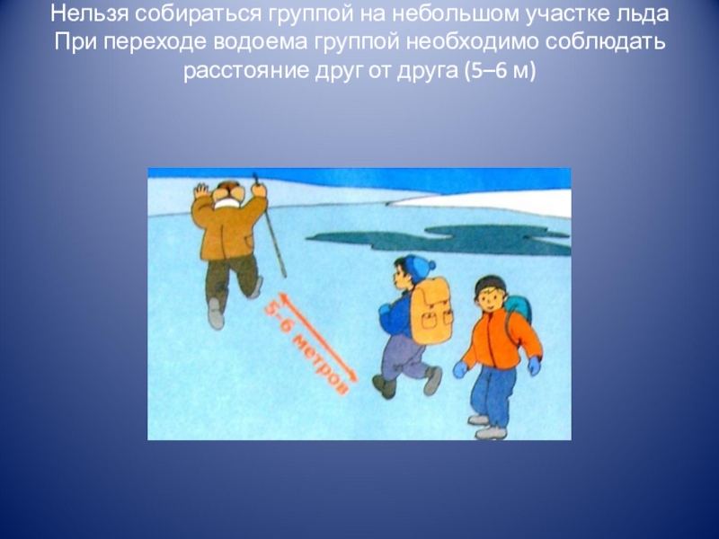Слайд 26Нельзя собираться группой на небольшом участке льда