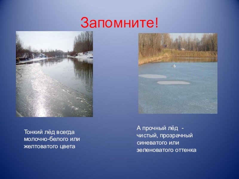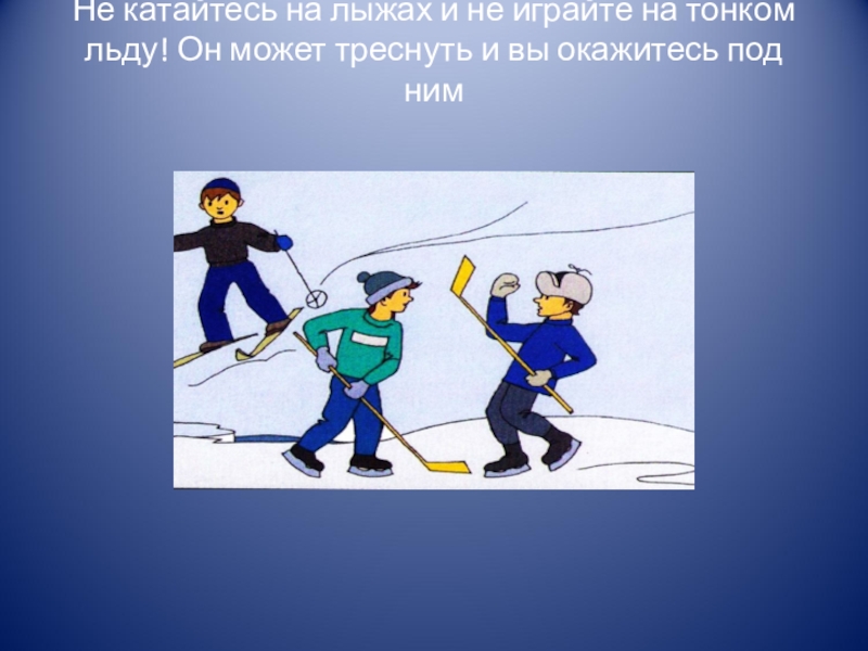 Слайд 27Не катайтесь на лыжах и не играйте на тонком льду! Он