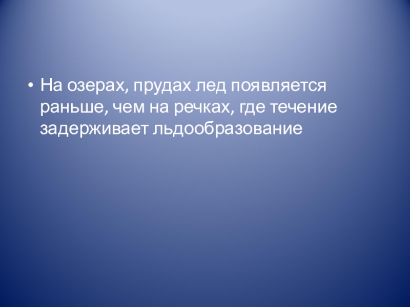На озерах, прудах лед появляется раньше, чем на речках, где течение