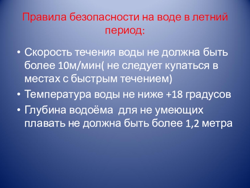 быть более 10м/мин( не следует купаться в местах с быстрым течением)